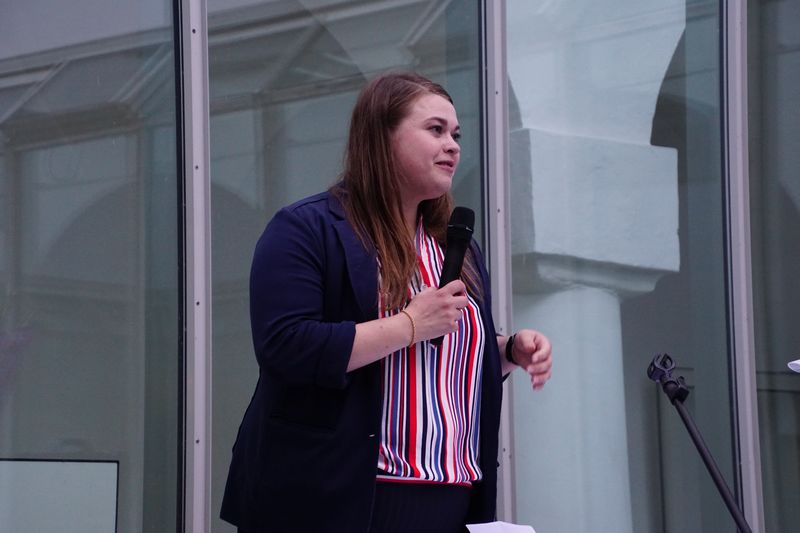 Helena Golder von der vhs Landshut begrüßt ihre Gäste (Foto: Edith M. Ascher)